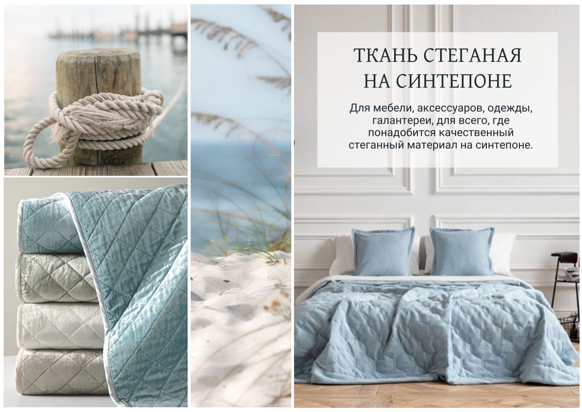 Ткань стеганная на синтепоне голубая -